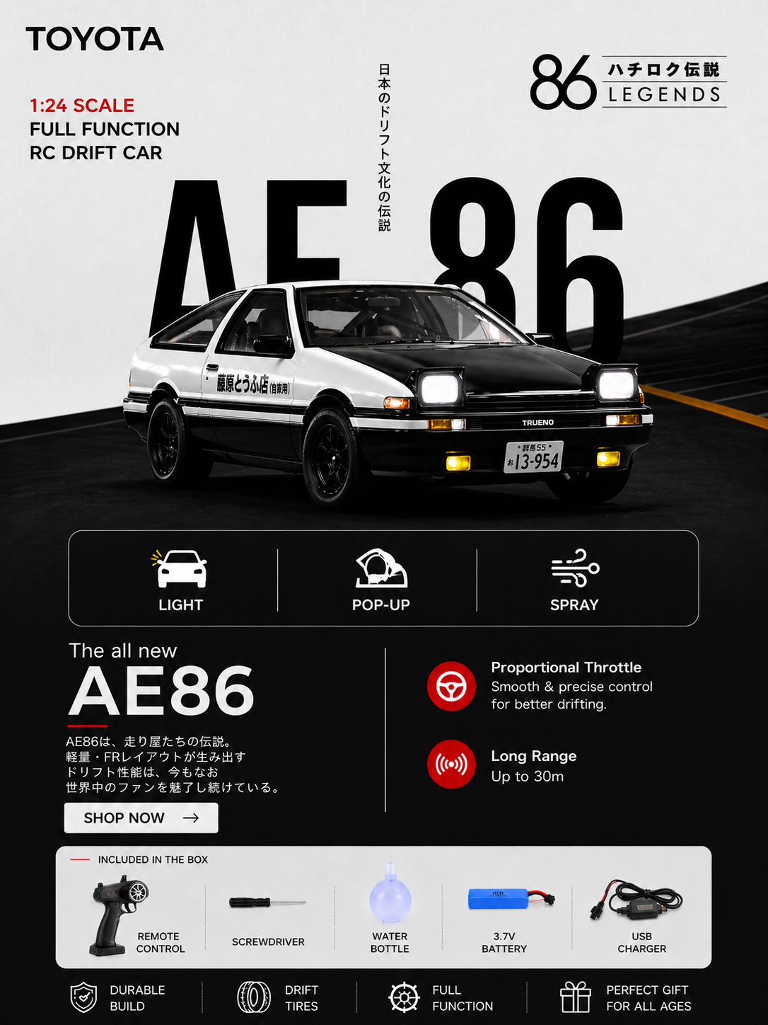 HGT AE86 RC Drift Car (1:24) JDM Legend
