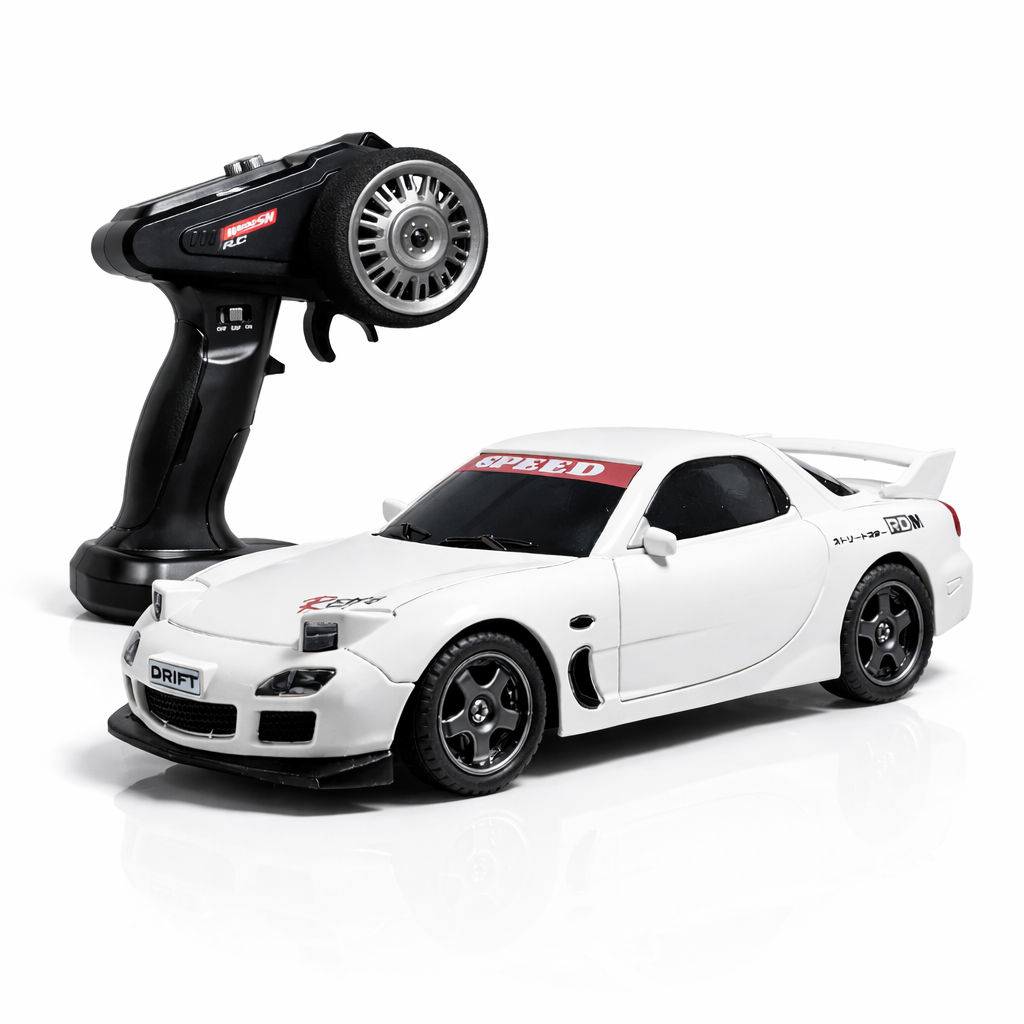 The HGT RX Retro JDM Drift RC Car (1:43) is built for smooth drifting, sharp control, and exciting speed in a compact scale. Designed for beginners and RC enthusiasts alike, this model delivers a realistic drifting experience with easy handling.