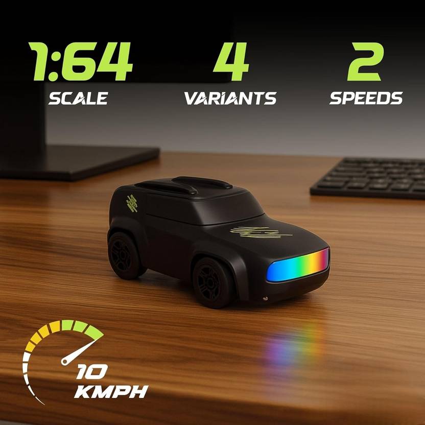 A true 1:64 scale mini RC drift car designed for fun in small spaces. Compact enough to fit in the palm of your hand, this mini drift car is perfect for desktop drifting, table racing, and quick play sessions anywhere.