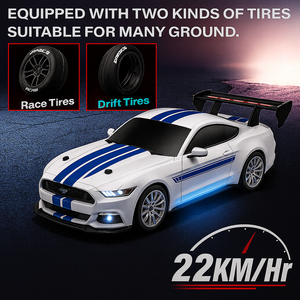 The DWH RS Drift RC Car (1:24)• Muscle Blue edition • is built for smooth drifting, easy control, and exciting speed. Featuring the same balanced 4WD drift platform, this variant comes with a PVC racing-style body, giving it a clean, sharp look while maintaining the same beginner-friendly handling and realistic performance.