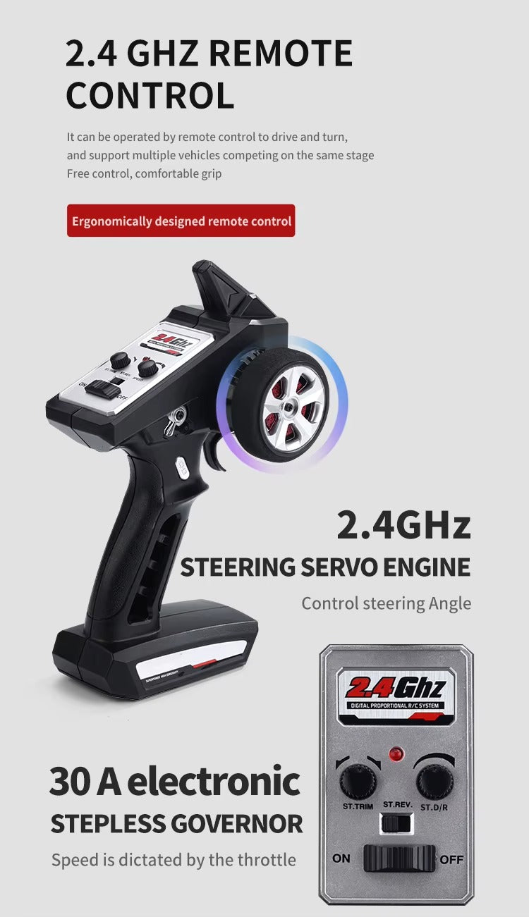 - High-Grip Rubber Wheels + Drift Tyres Included